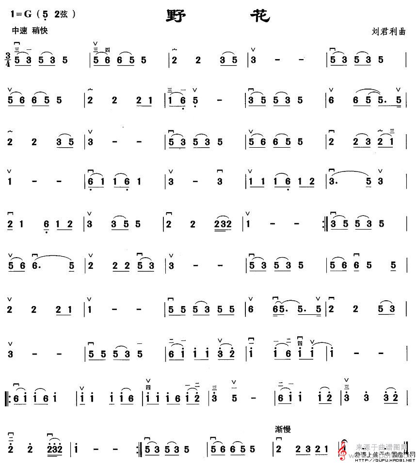 当前位置:曲谱图网器乐曲谱胡琴野花(野花简谱曲谱教学)