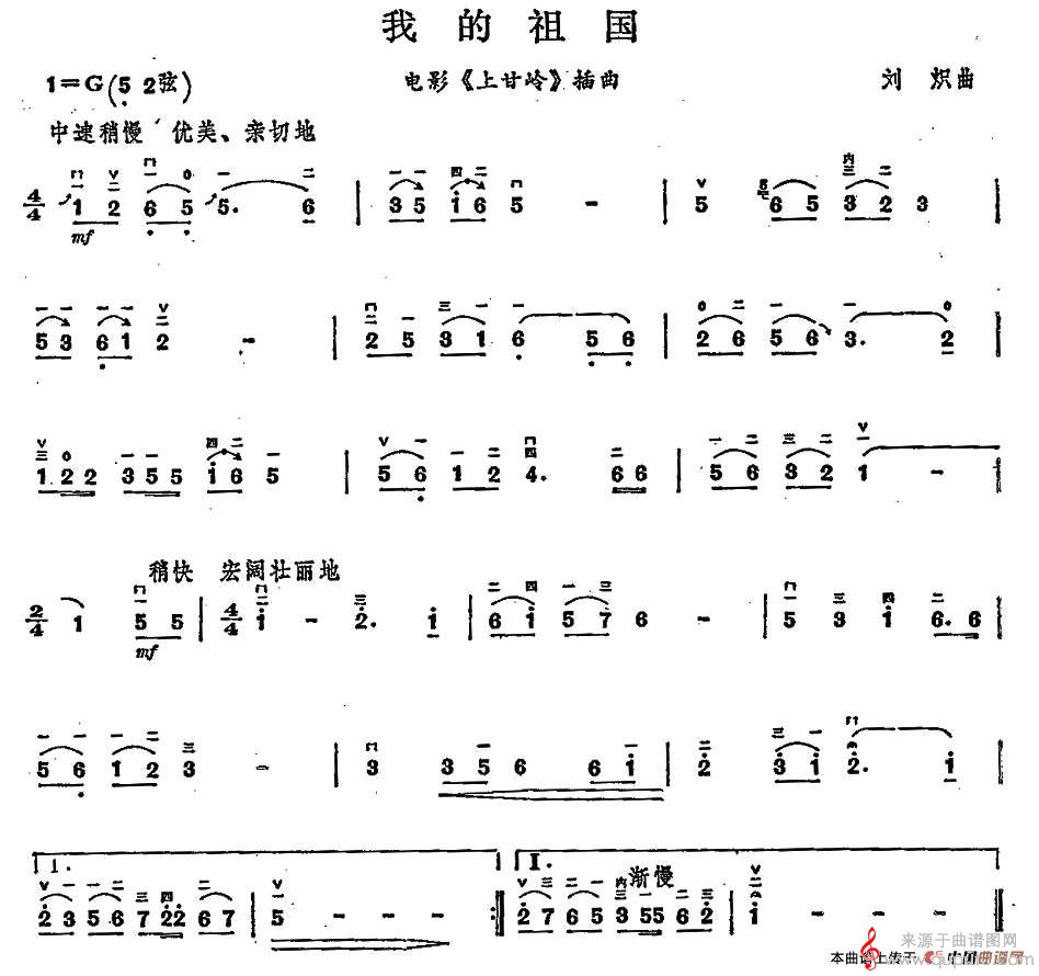 我的祖国(我的祖国胡琴谱简谱教学)