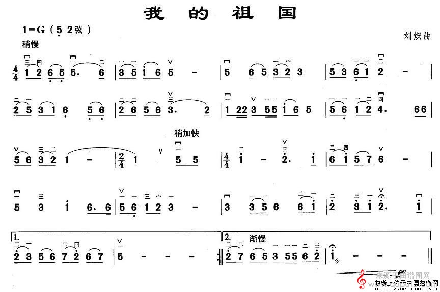 曲谱图网为您提供我的祖国(我的祖国胡琴谱简谱教学)找谱子,就上曲谱图网。