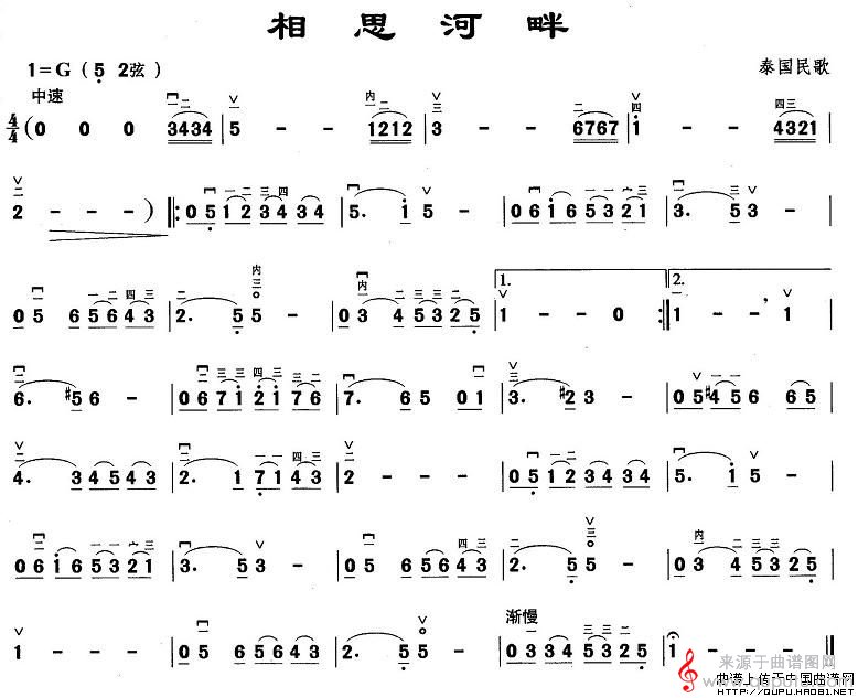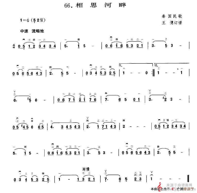当前位置:曲谱图网器乐曲谱胡琴相思河畔(泰国民歌相思河畔简谱曲谱)