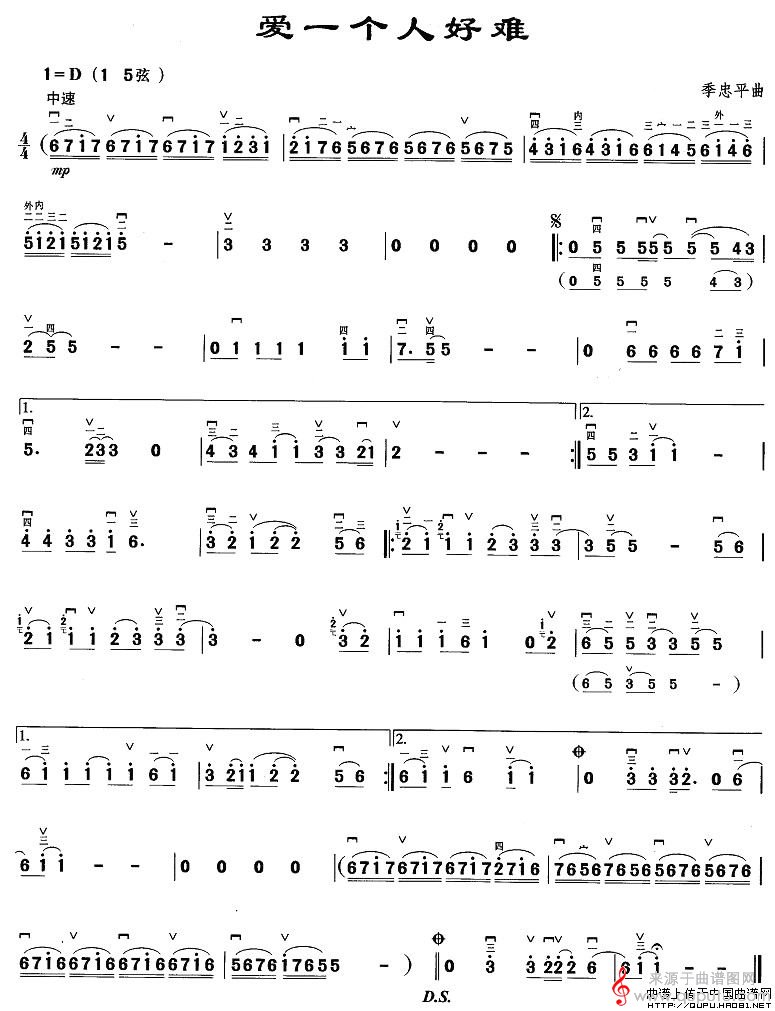 曲谱图网为您提供爱一个人好难(爱一个人好难原创胡琴谱教学)找谱子,就上曲谱图网。