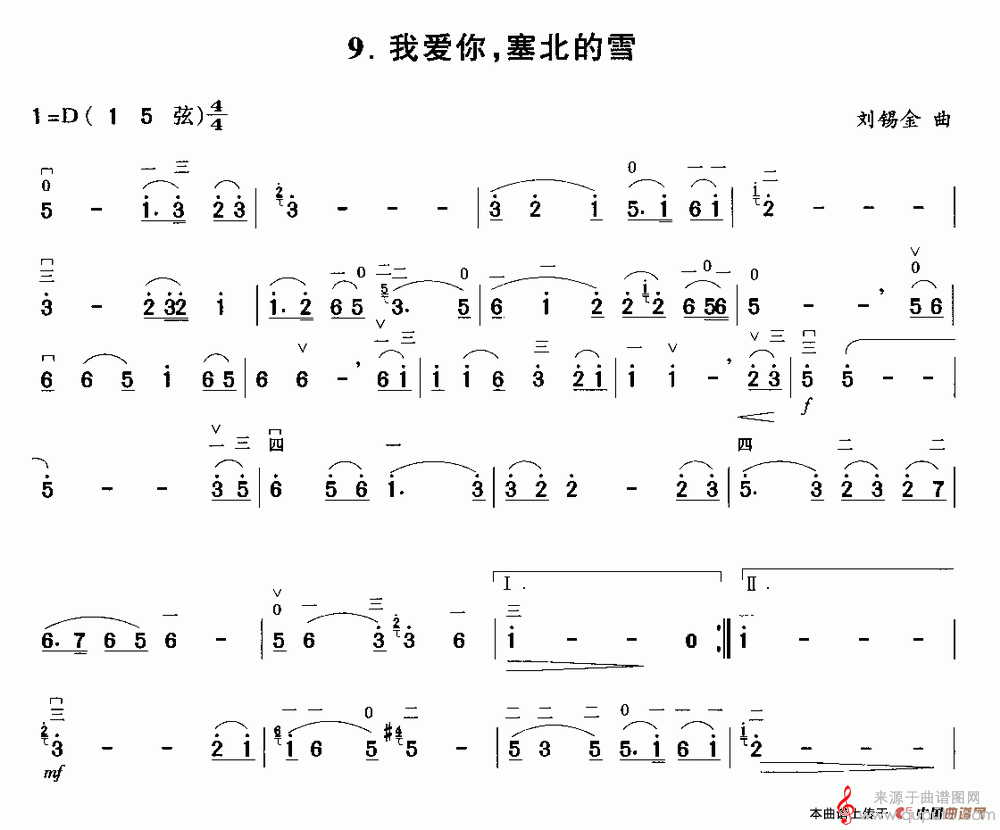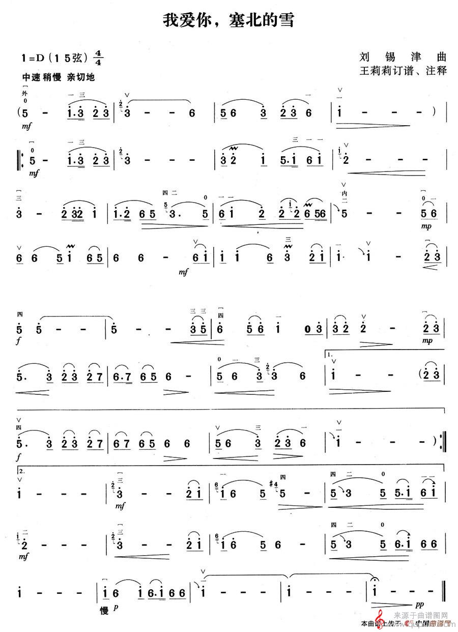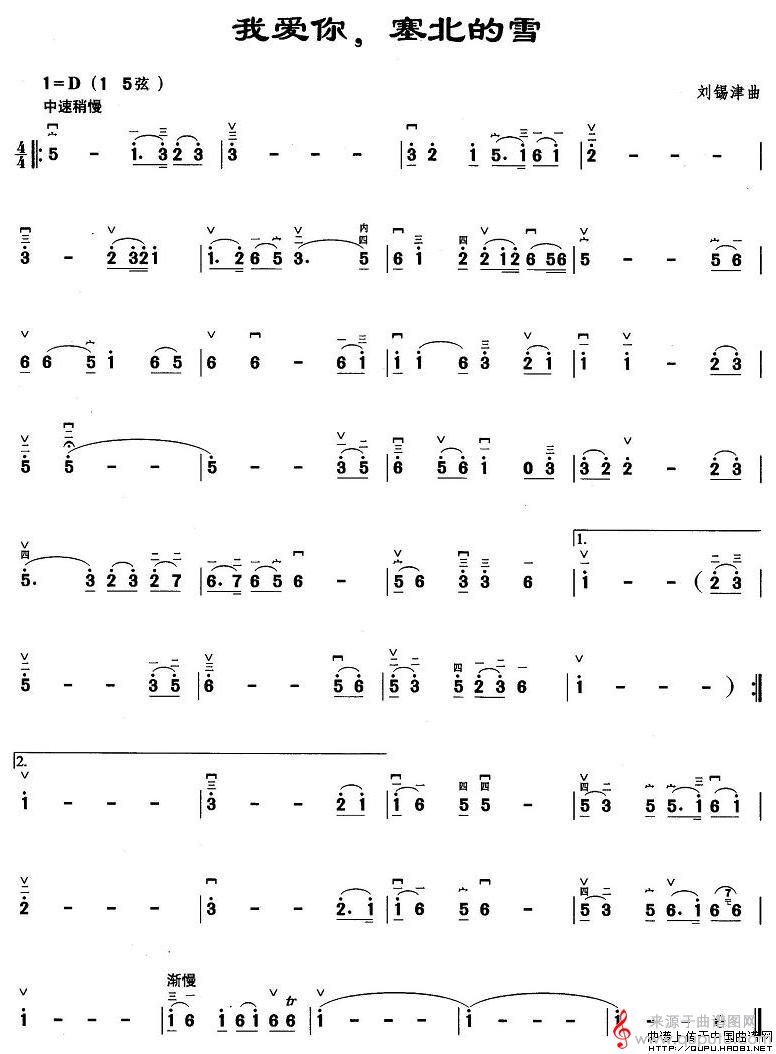 当前位置:曲谱图网器乐曲谱胡琴我爱你,塞北的雪(我爱你,塞北的雪歌词简谱曲谱)