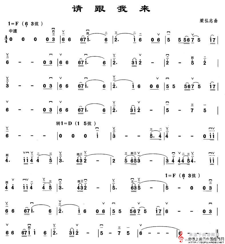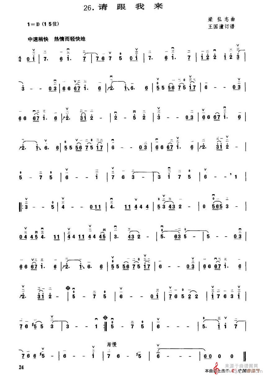曲谱图网为您提供请跟我来(请跟我来二胡演奏独奏简谱)找谱子,就上曲谱图网。
