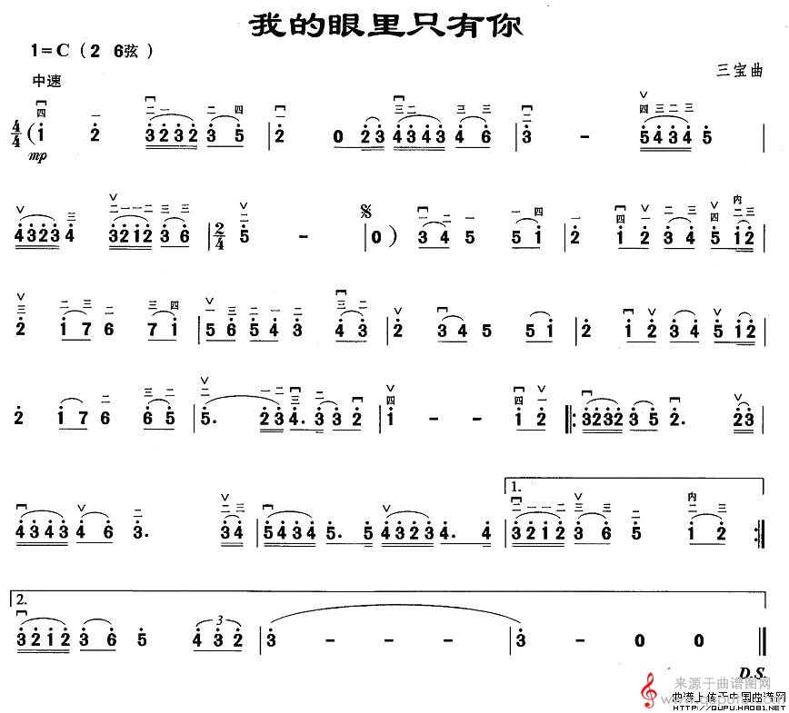 当前位置:曲谱图网器乐曲谱胡琴我的眼里只有你(三宝作曲版我的眼里只有你简谱曲谱)