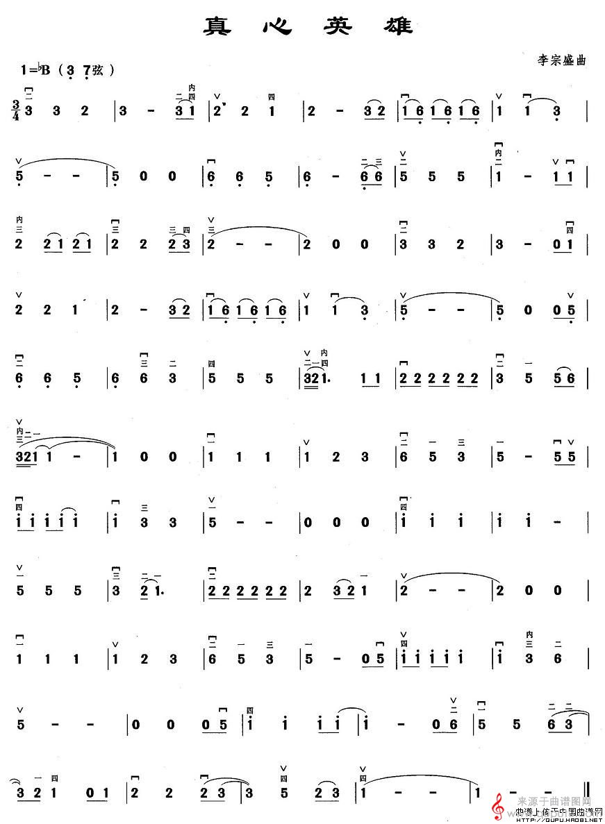 曲谱图网为您提供真心英雄(真心英雄歌词歌曲胡琴谱)找谱子,就上曲谱图网。