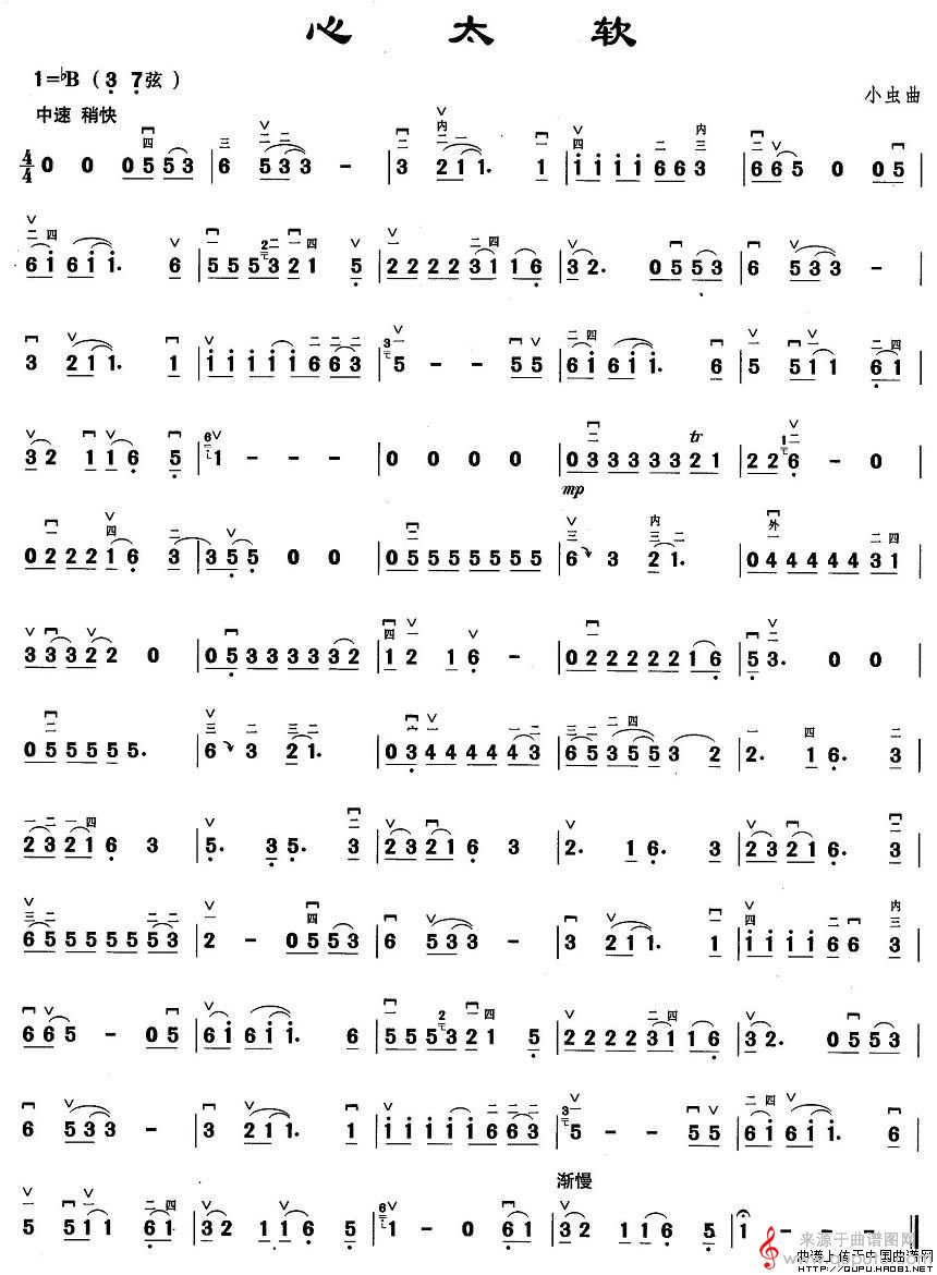 曲谱图网为您提供心太软(心太软简谱曲谱胡琴谱)找谱子,就上曲谱图网。