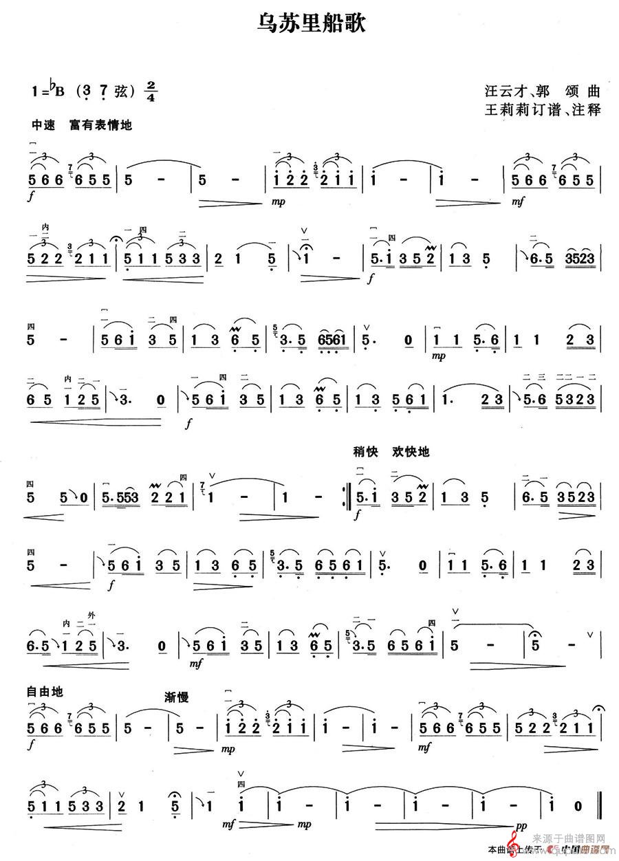 曲谱图网为您提供乌苏里船歌(乌苏里船歌歌词简谱胡琴谱)找谱子,就上曲谱图网。