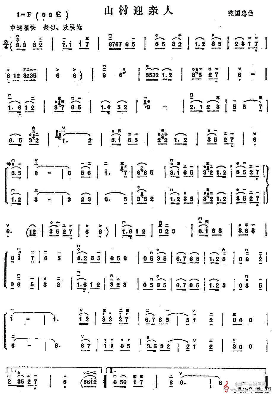 曲谱图网为您提供山村迎亲人(范国忠作曲版山村迎亲人简谱曲谱)找谱子,就上曲谱图网。