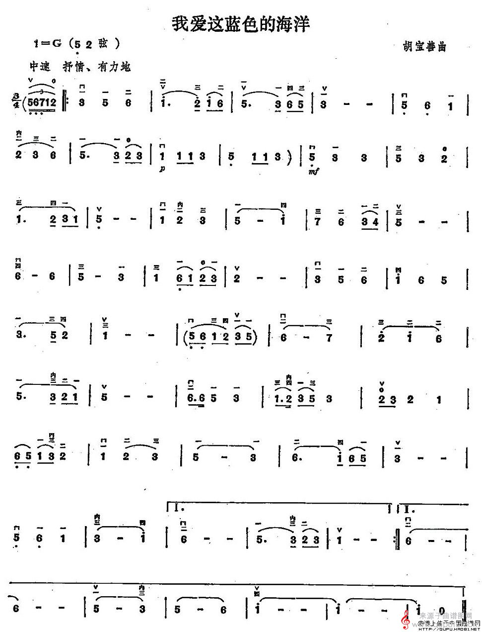 曲谱图网为您提供我爱这蓝色的海洋(我爱这蓝色的海洋原创胡琴谱)找谱子,就上曲谱图网。