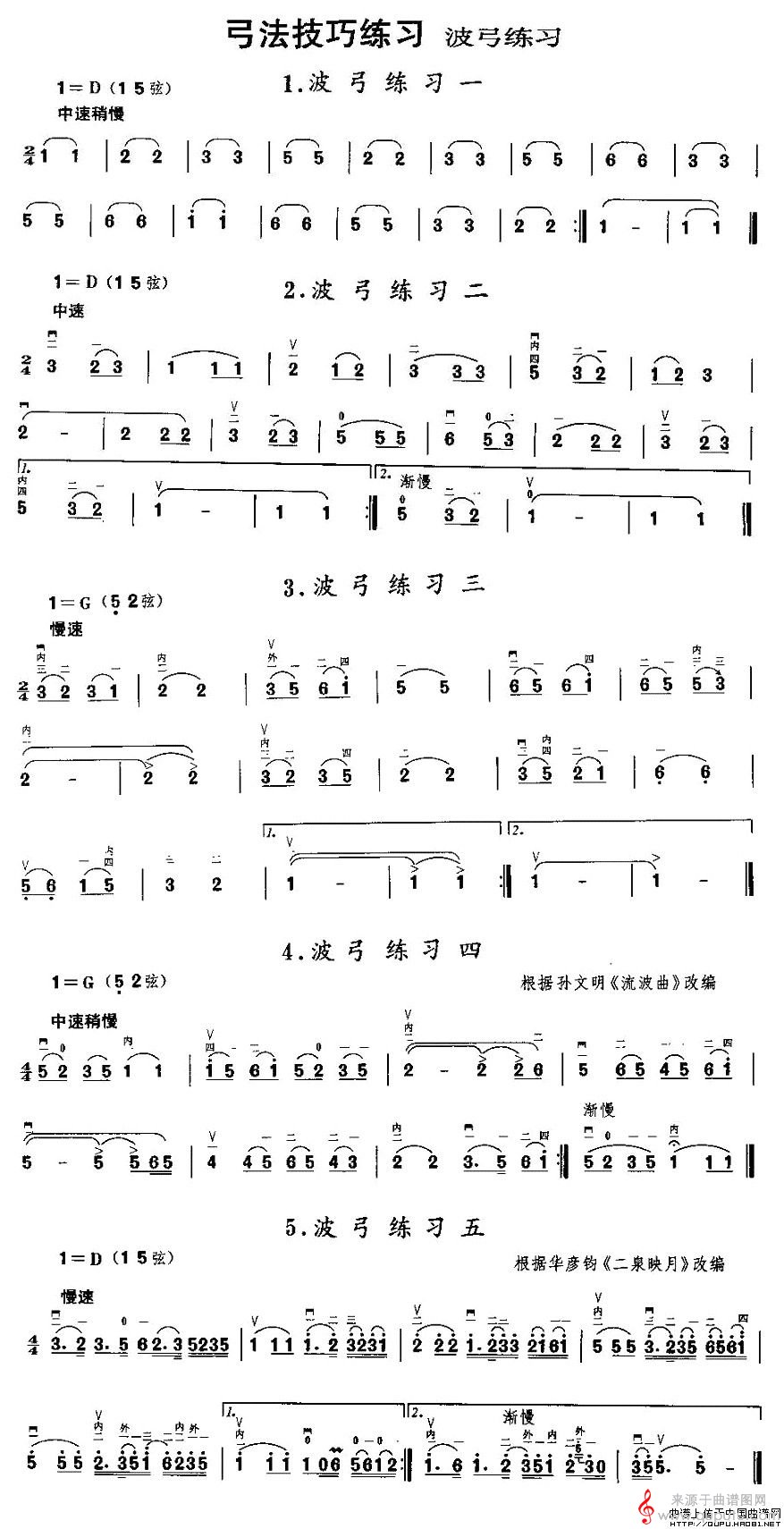曲谱图网为您提供二胡微型练习曲:波弓练习(胡琴入门学习)找谱子,就上曲谱图网。