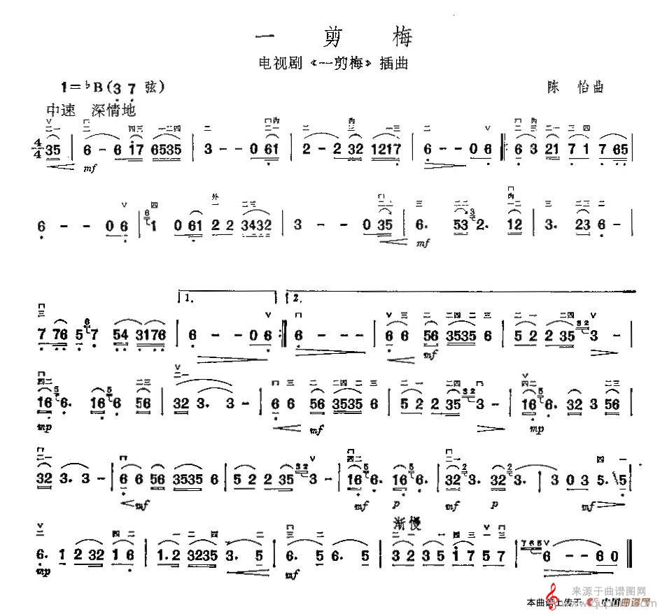 一剪梅(电视剧《一剪梅》插曲一剪梅歌词简谱胡琴谱)