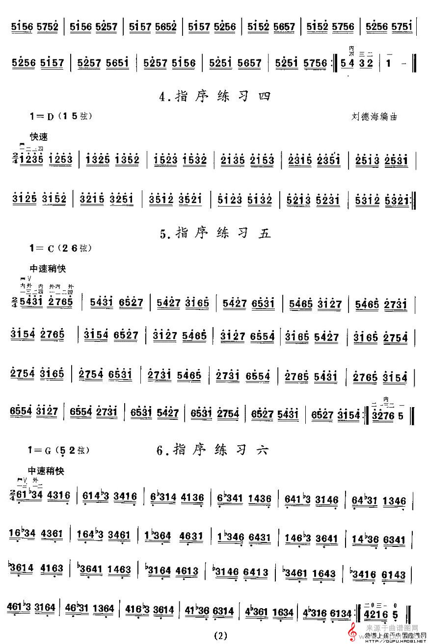 曲谱图网为您提供二胡微型练习曲:指序练习(二胡微型练习曲:指序练习胡琴谱教学)找谱子,就上曲谱图网。