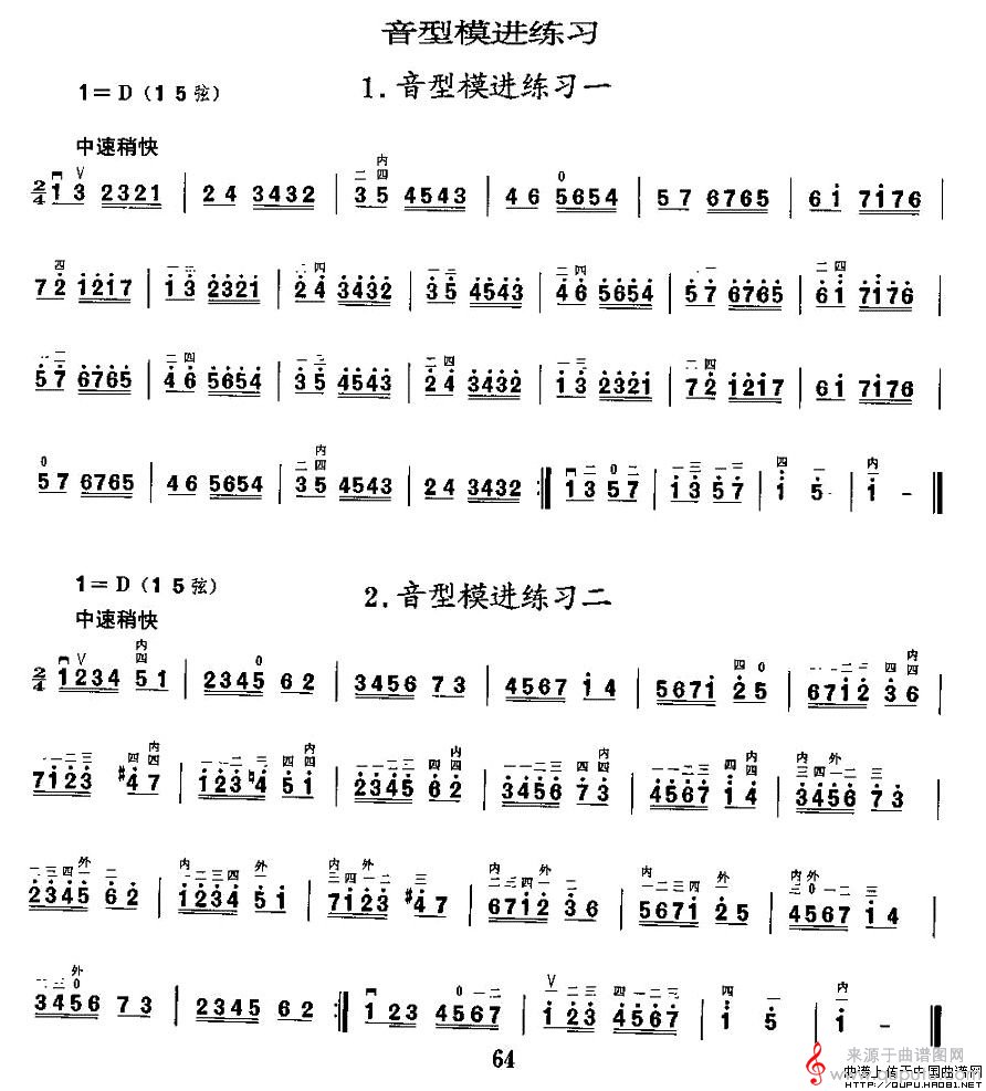 曲谱图网为您提供二胡微型练习曲:音型模进练习(二胡微型练习曲:音型模进练习曲谱教学)找谱子,就上曲谱图网。