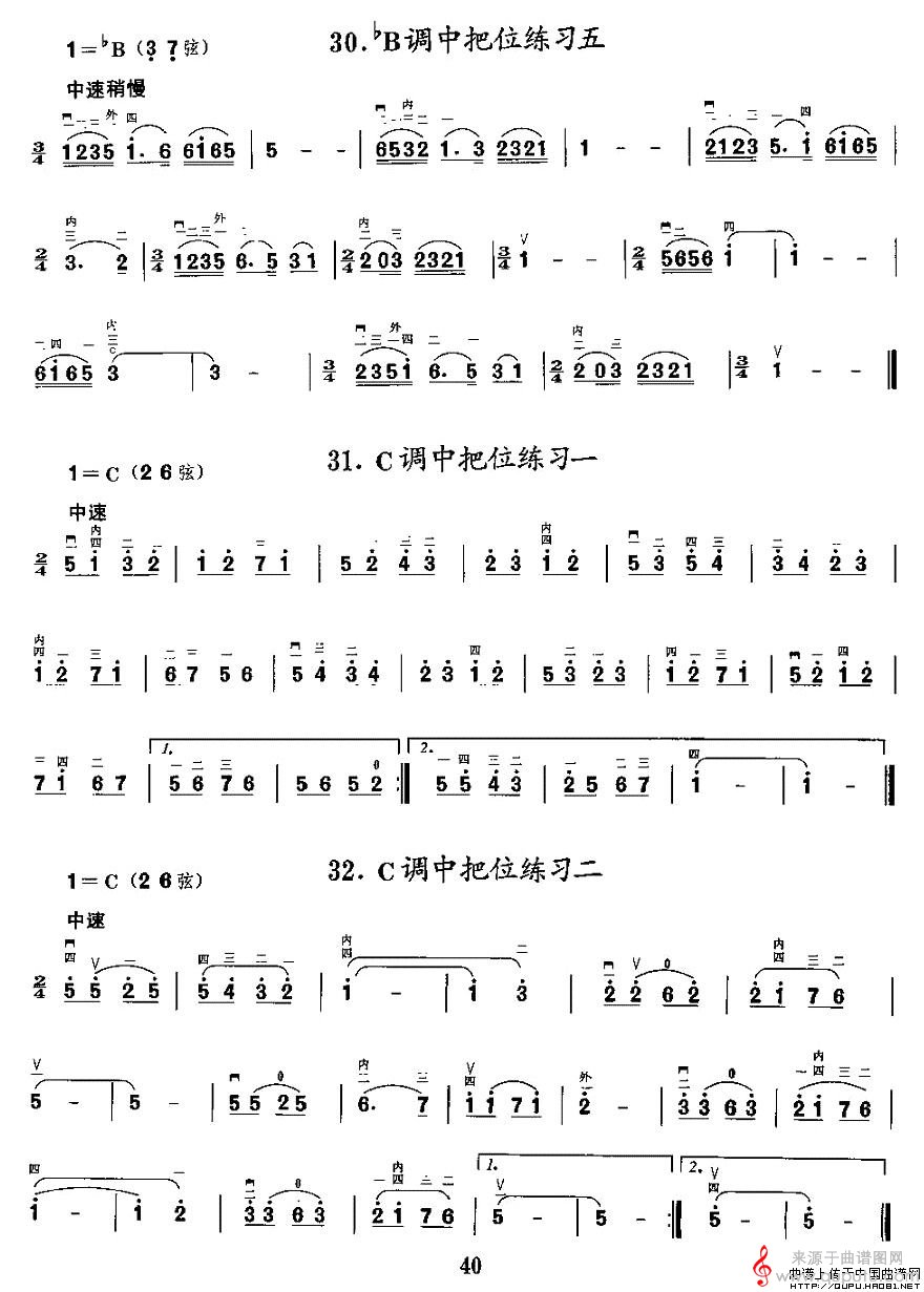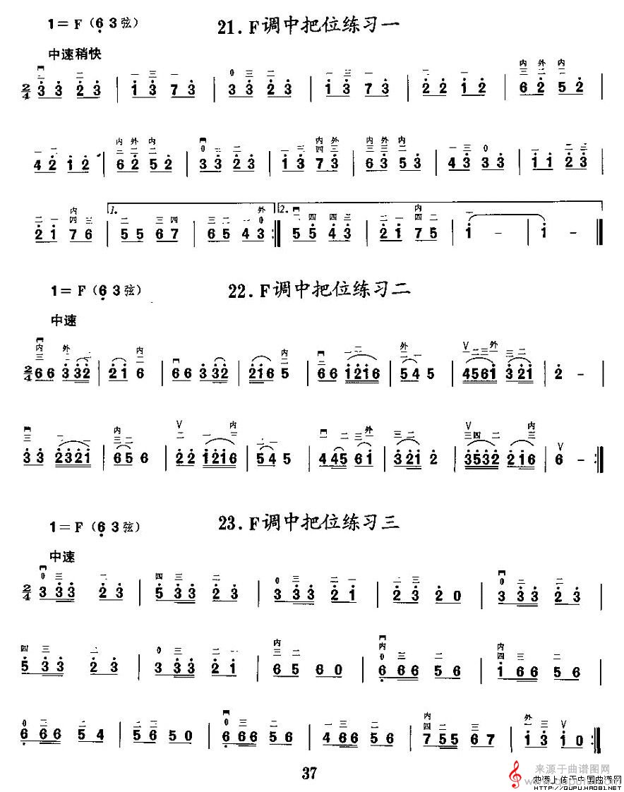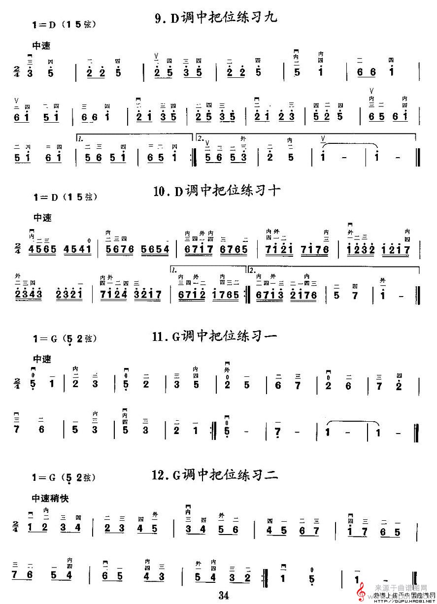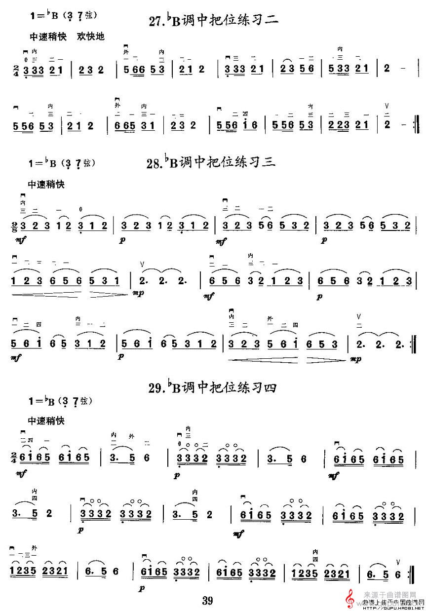 当前位置:曲谱图网器乐曲谱胡琴二胡微型练习曲:各调中把位练习(二胡微型练习曲:各调中把位练习曲谱教学)