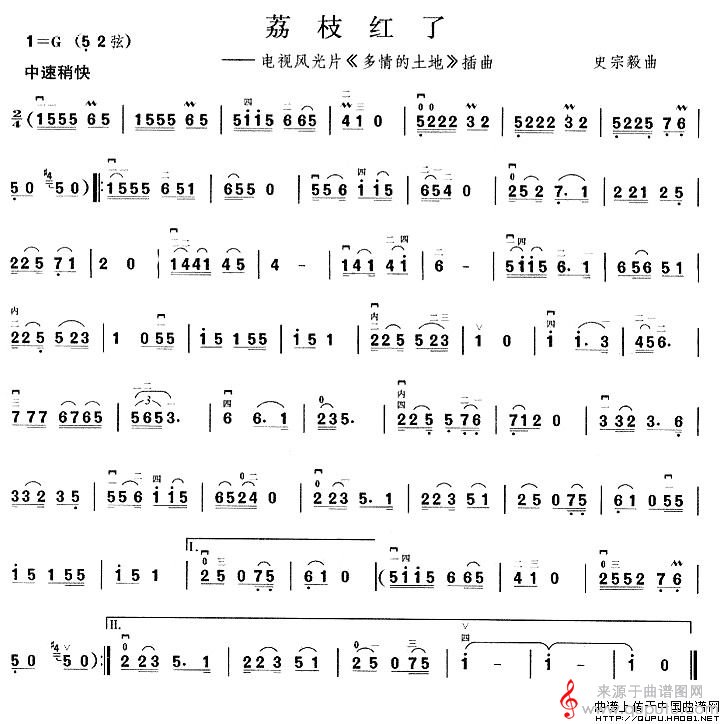 曲谱图网为您提供荔枝红了(电视风光片《多情的土地》插曲史宗毅作曲版简谱)找谱子,就上曲谱图网。