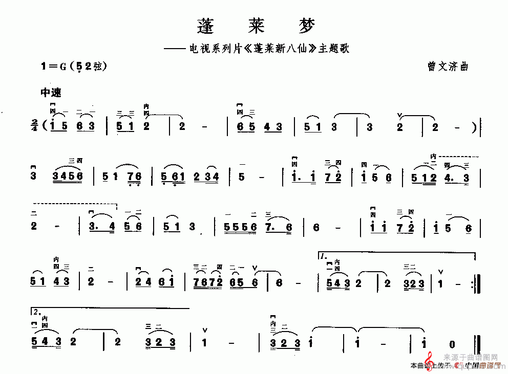 曲谱图网为您提供蓬莱梦(电视系列片《蓬莱新八仙》主题歌曾文及济作曲版简谱)找谱子,就上曲谱图网。