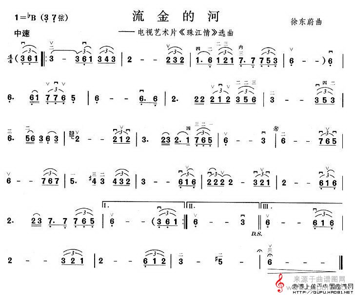 曲谱图网为您提供流金的河(电视艺术片《珠江情》选曲简谱)找谱子,就上曲谱图网。