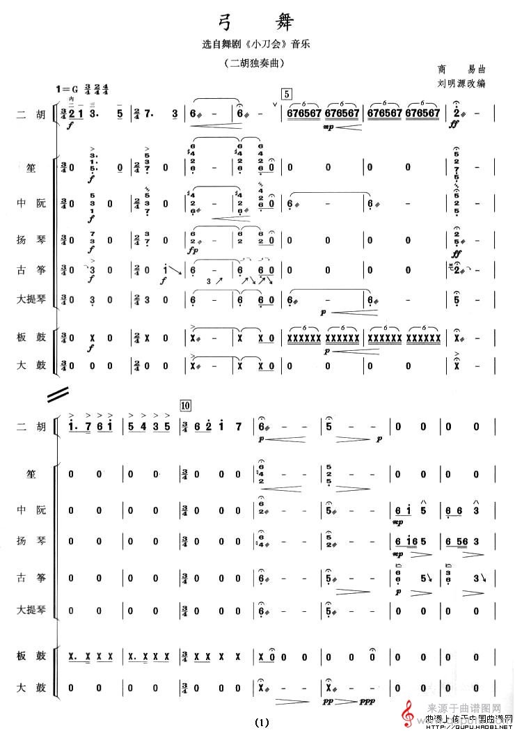 曲谱图网为您提供弓舞(二胡独奏+乐队伴奏总谱选自舞剧《小刀剧》音乐简谱)找谱子,就上曲谱图网。