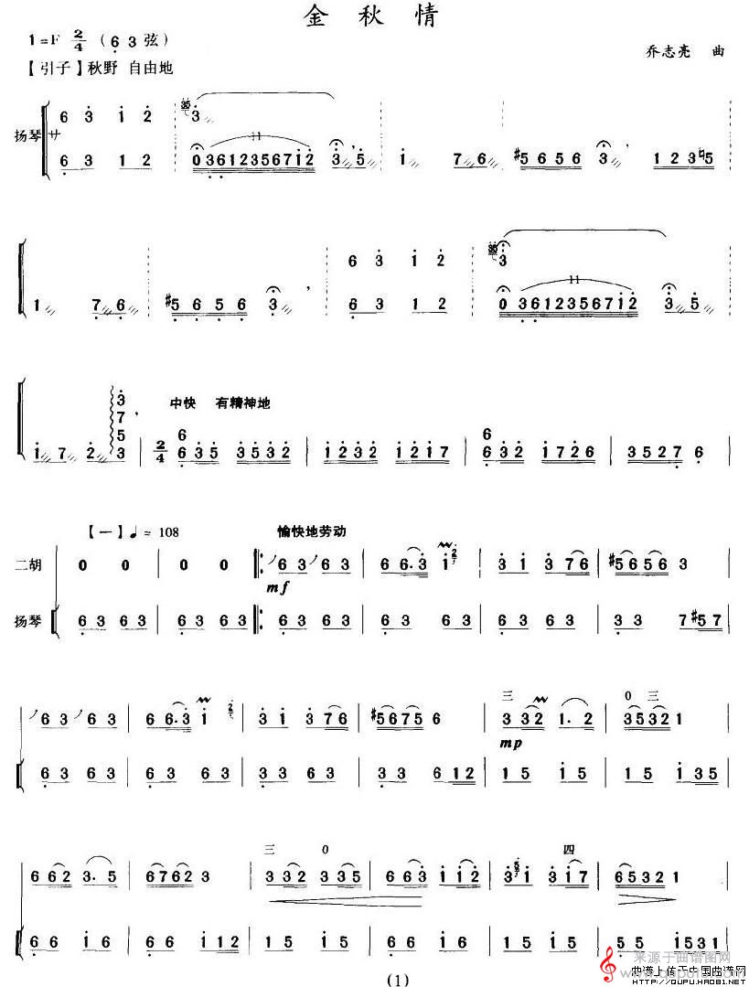 曲谱图网为您提供金秋情(扬琴伴奏谱原创胡琴谱教学)找谱子,就上曲谱图网。