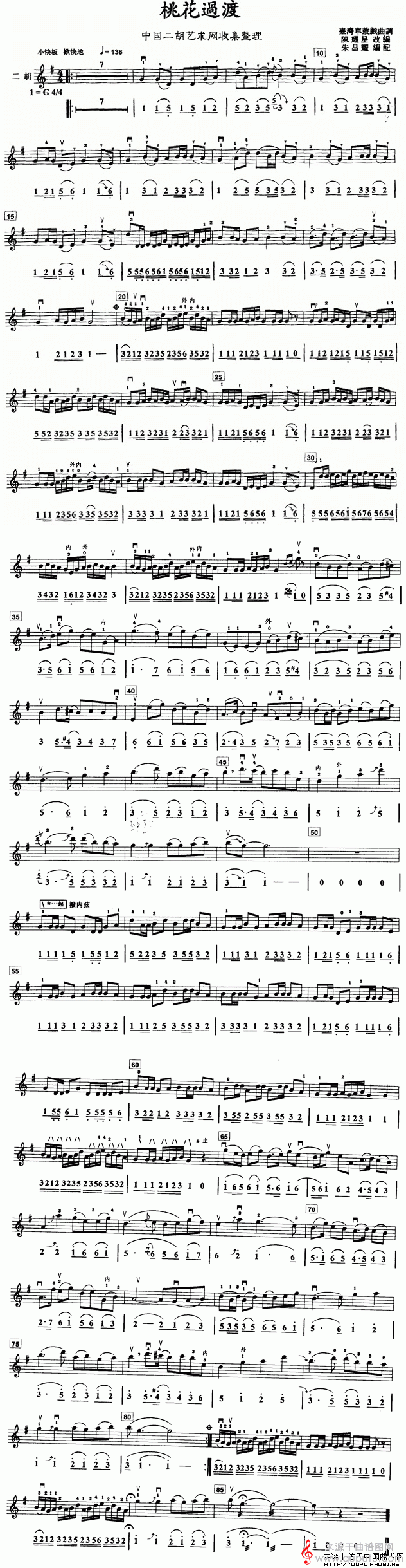 曲谱图网为您提供桃花过渡(线简谱混排版简谱胡琴谱)找谱子,就上曲谱图网。