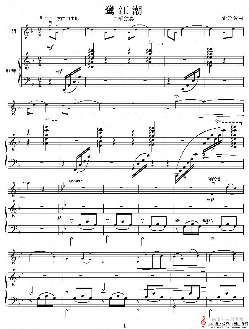 曲谱图网为您提供鹭江潮(二胡独奏曲鹭江潮钢琴伴奏谱简谱)找谱子,就上曲谱图网。