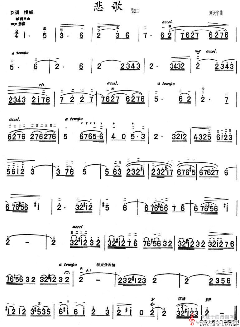 悲歌(弓法二刘天华作曲版悲歌简谱)