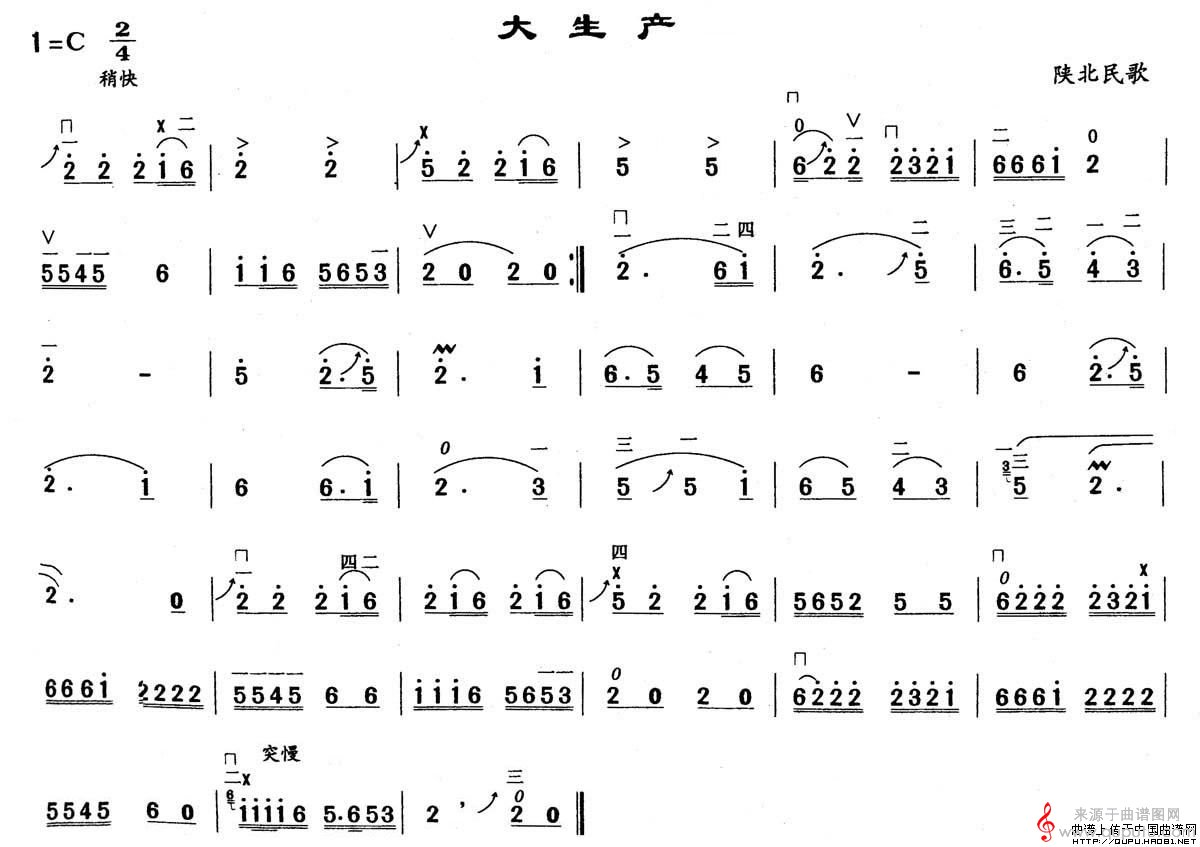 当前位置:曲谱图网器乐曲谱胡琴大生产(陕北民歌大生产胡琴谱简谱)
