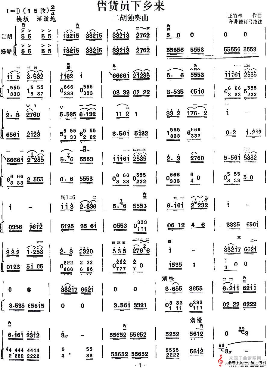 售货员下乡来(二胡独奏曲售货员下乡来扬琴伴奏谱)