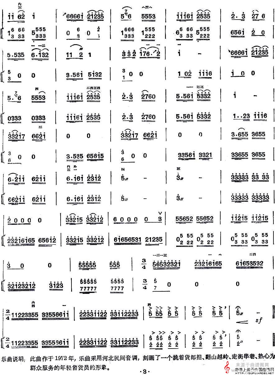 曲谱图网为您提供售货员下乡来(二胡独奏曲售货员下乡来扬琴伴奏谱)找谱子,就上曲谱图网。