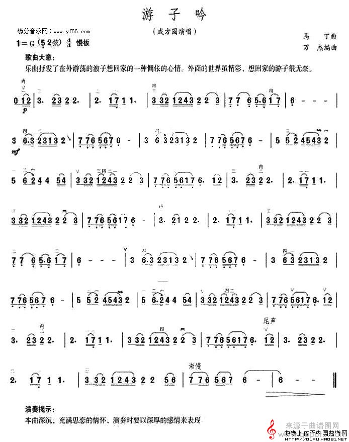 曲谱图网为您提供游子吟(游子吟歌词简谱胡琴谱)找谱子,就上曲谱图网。