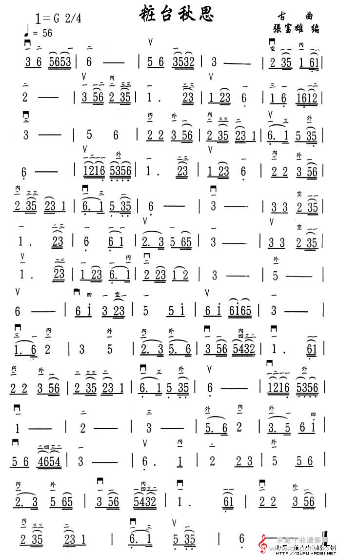 曲谱图网为您提供粧台秋思(古曲粧台秋思简谱曲谱)找谱子,就上曲谱图网。
