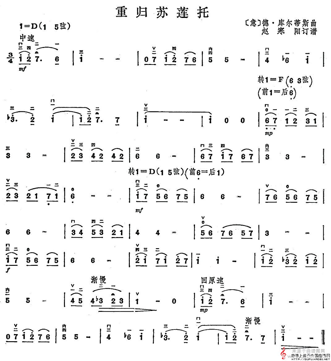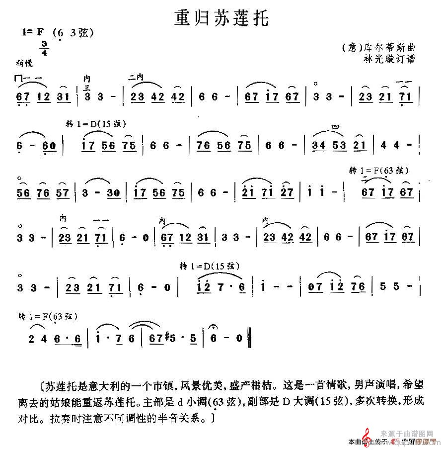 曲谱图网为您提供重归苏莲托(重归苏莲托歌词简谱胡琴谱)找谱子,就上曲谱图网。