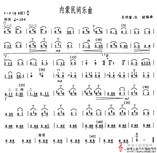 曲谱图网为您提供内蒙民间乐曲(内蒙民间乐曲胡琴谱教学)找谱子,就上曲谱图网。