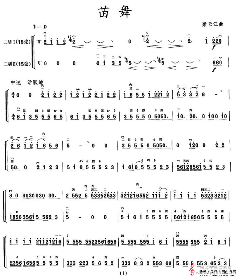 曲谱图网为您提供苗舞(二胡二重奏梁云江作曲版简谱)找谱子,就上曲谱图网。