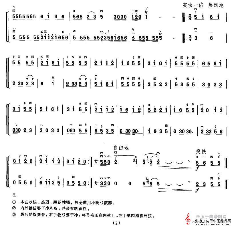 苗舞(二胡二重奏梁云江作曲版简谱)