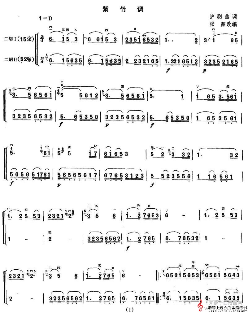 曲谱图网为您提供紫竹调(沪剧曲调紫竹调二胡二重奏简谱)找谱子,就上曲谱图网。