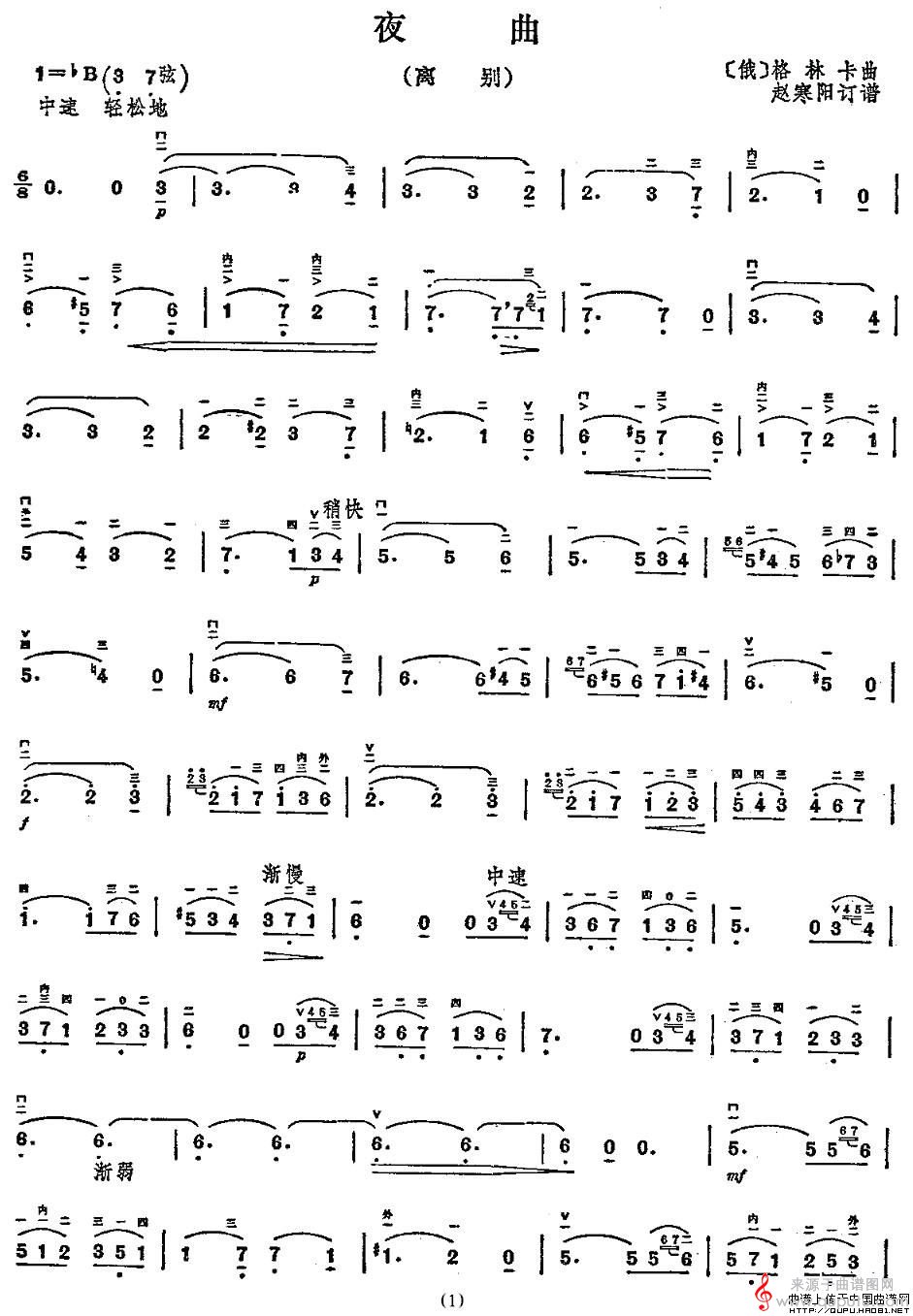 曲谱图网为您提供夜曲(夜曲简谱曲谱胡琴谱)找谱子,就上曲谱图网。