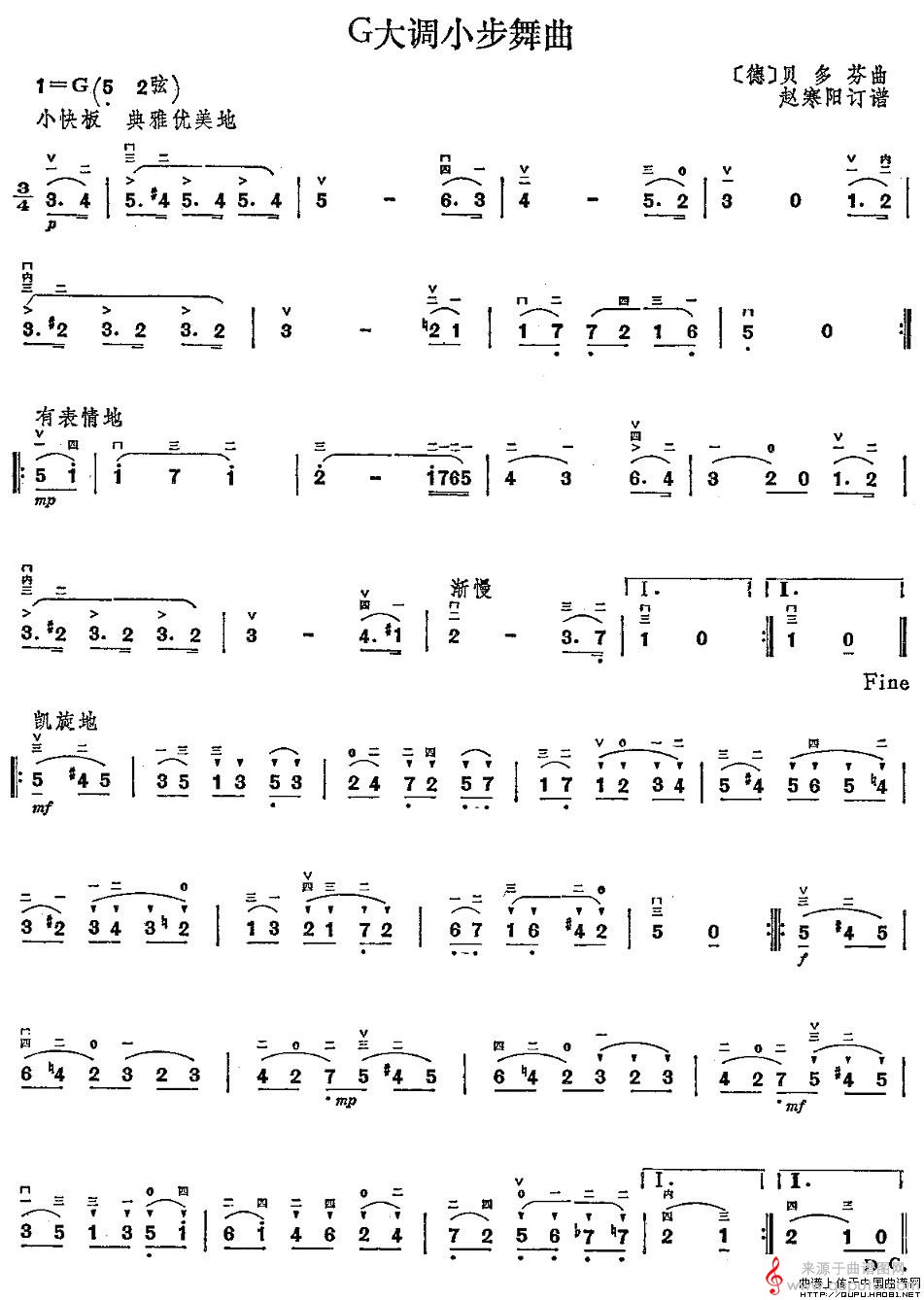 曲谱图网为您提供G大调小步舞曲(G大调小步舞曲原创胡琴谱简谱教学)找谱子,就上曲谱图网。