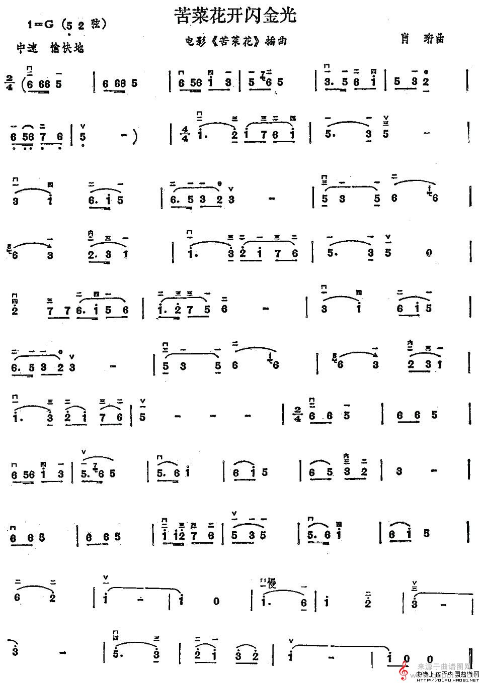 曲谱图网为您提供苦菜花开闪金光(电影《苦菜花》插曲苦菜花开闪金光简谱胡琴谱)找谱子,就上曲谱图网。