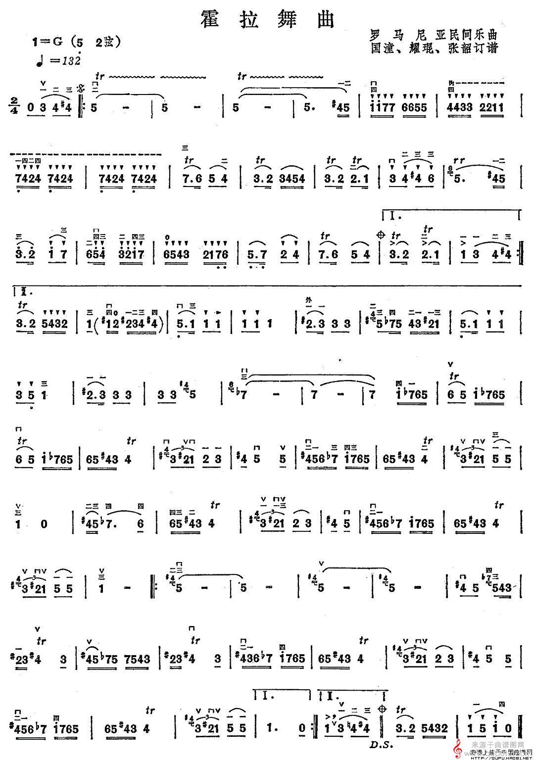 当前位置:曲谱图网器乐曲谱胡琴霍拉舞曲(国潼订谱版霍拉舞曲罗马尼亚民间乐曲简谱)
