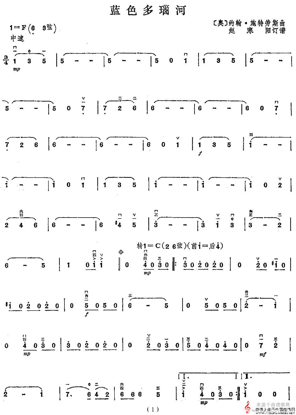 曲谱图网为您提供蓝色多瑙河(蓝色多瑙河歌词简谱胡琴谱教学)找谱子,就上曲谱图网。