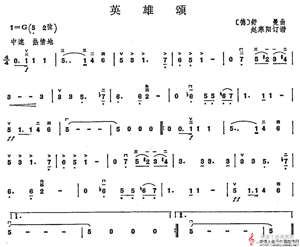 曲谱图网为您提供英雄颂(舒曼作曲版英雄颂歌词简谱胡琴谱)找谱子,就上曲谱图网。