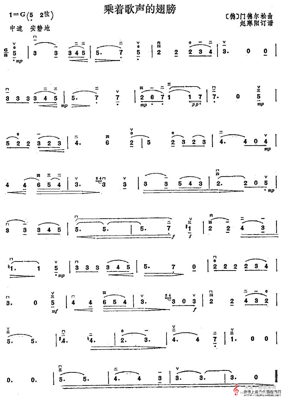 曲谱图网为您提供乘着歌声的翅膀(乘着歌声的翅膀歌词简谱胡琴谱教学)找谱子,就上曲谱图网。