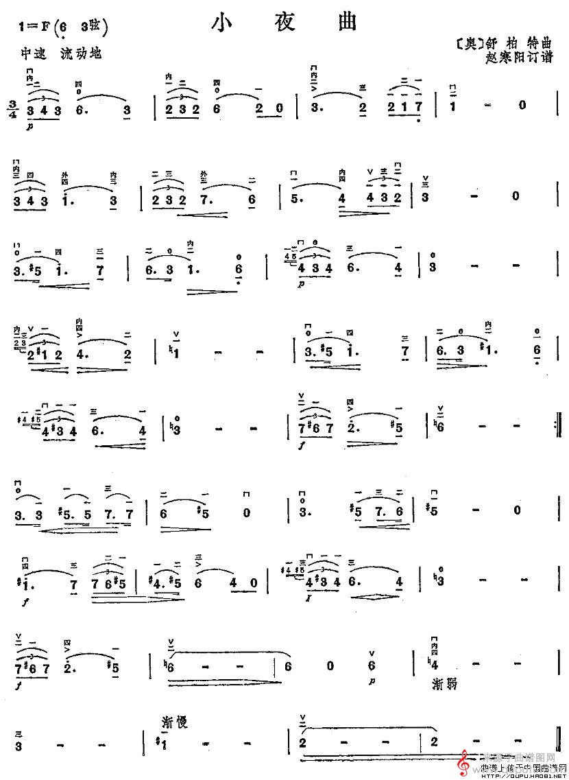 曲谱图网为您提供小夜曲(舒伯特作曲版简谱胡琴谱)找谱子,就上曲谱图网。