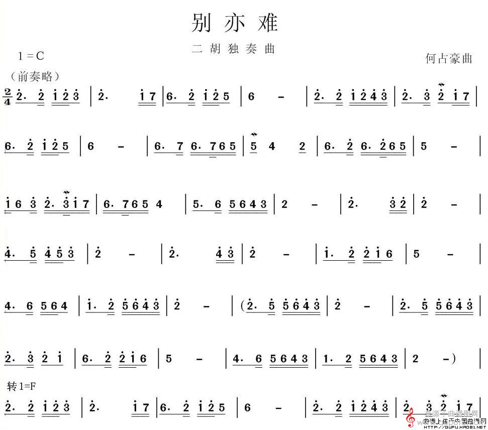 别亦难(二胡独奏谱别亦难简谱胡琴谱)