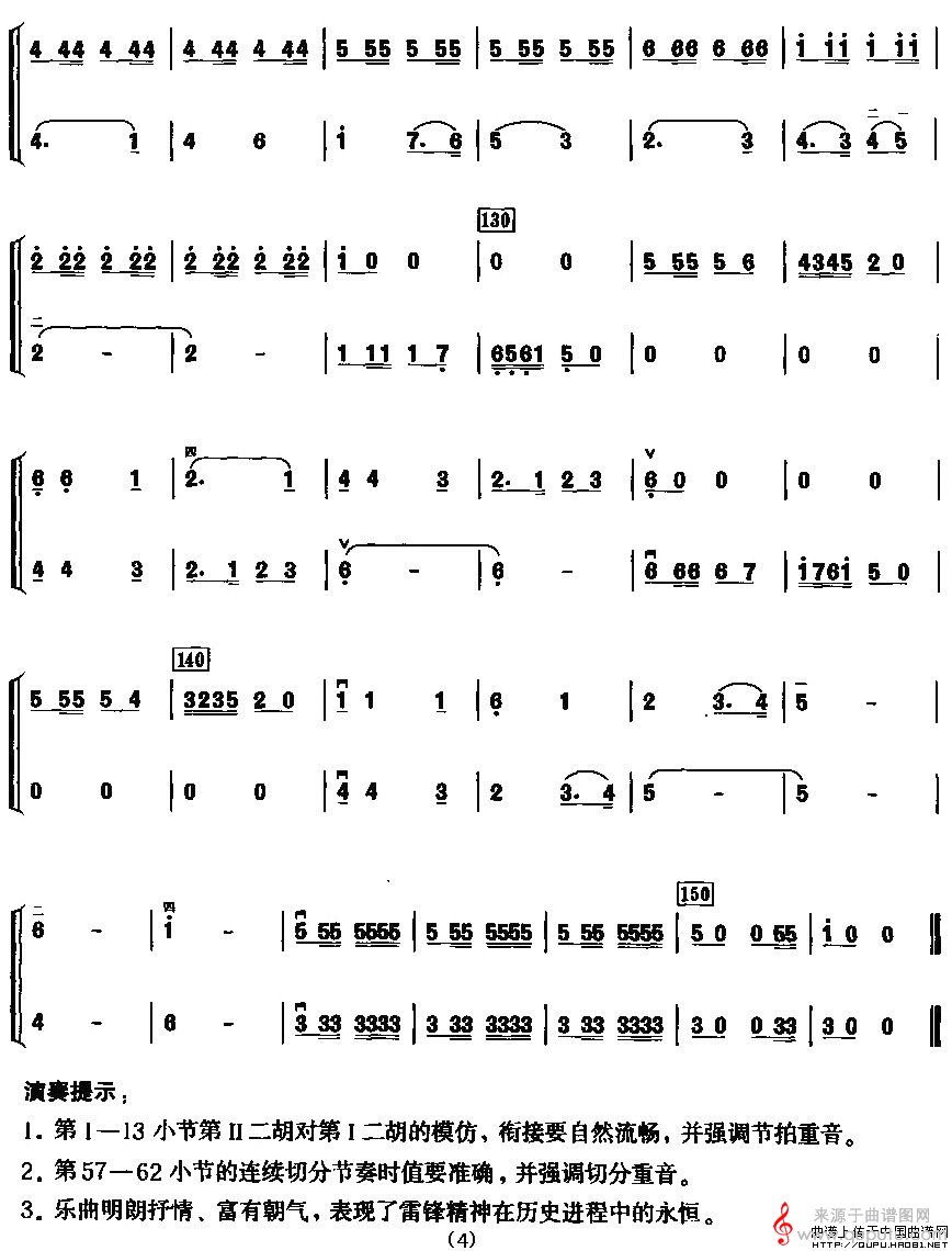 雷锋之歌(二重奏原创胡琴谱简谱教学)