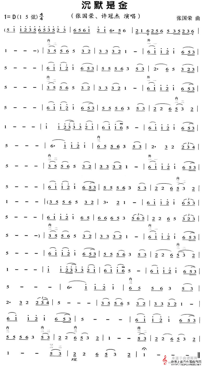 当前位置:曲谱图网器乐曲谱胡琴沉默是金(沉默是金歌词简谱胡琴谱教学)