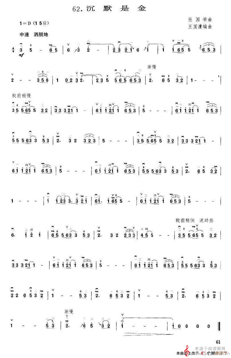 曲谱图网为您提供沉默是金(沉默是金歌词简谱胡琴谱教学)找谱子,就上曲谱图网。