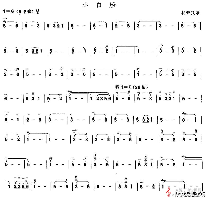 曲谱图网为您提供小白船(朝鲜民歌小白船简谱胡琴谱)找谱子,就上曲谱图网。