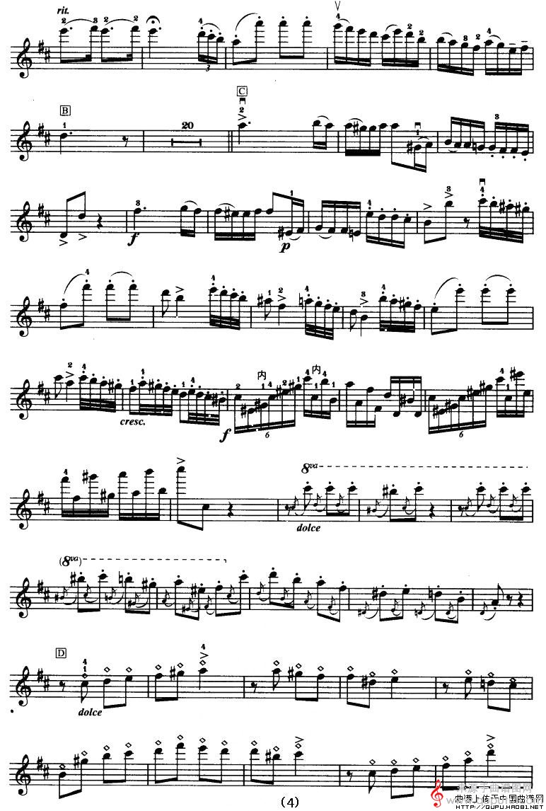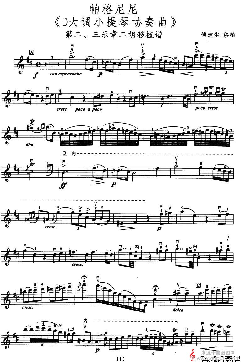 D大调小提琴协奏曲(二胡移植五线谱歌词简谱)